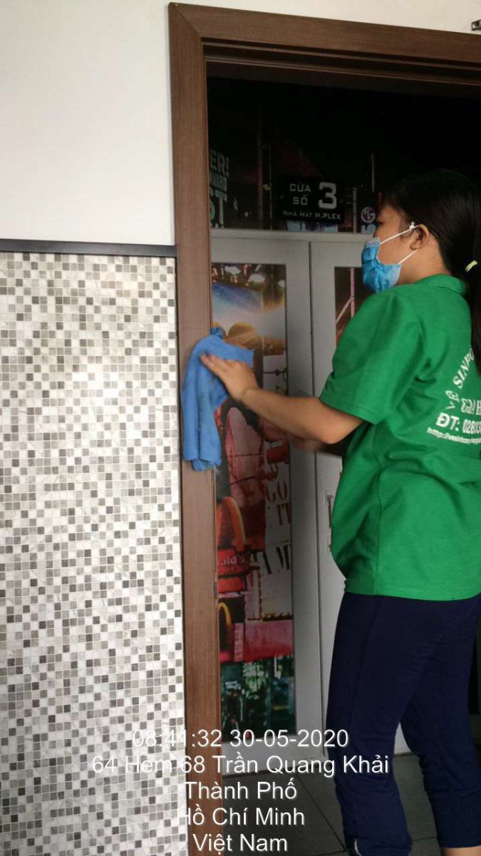 Vệ sinh hệ thống các cửa ra vào, sảnh chính, hành lang, lối đi.